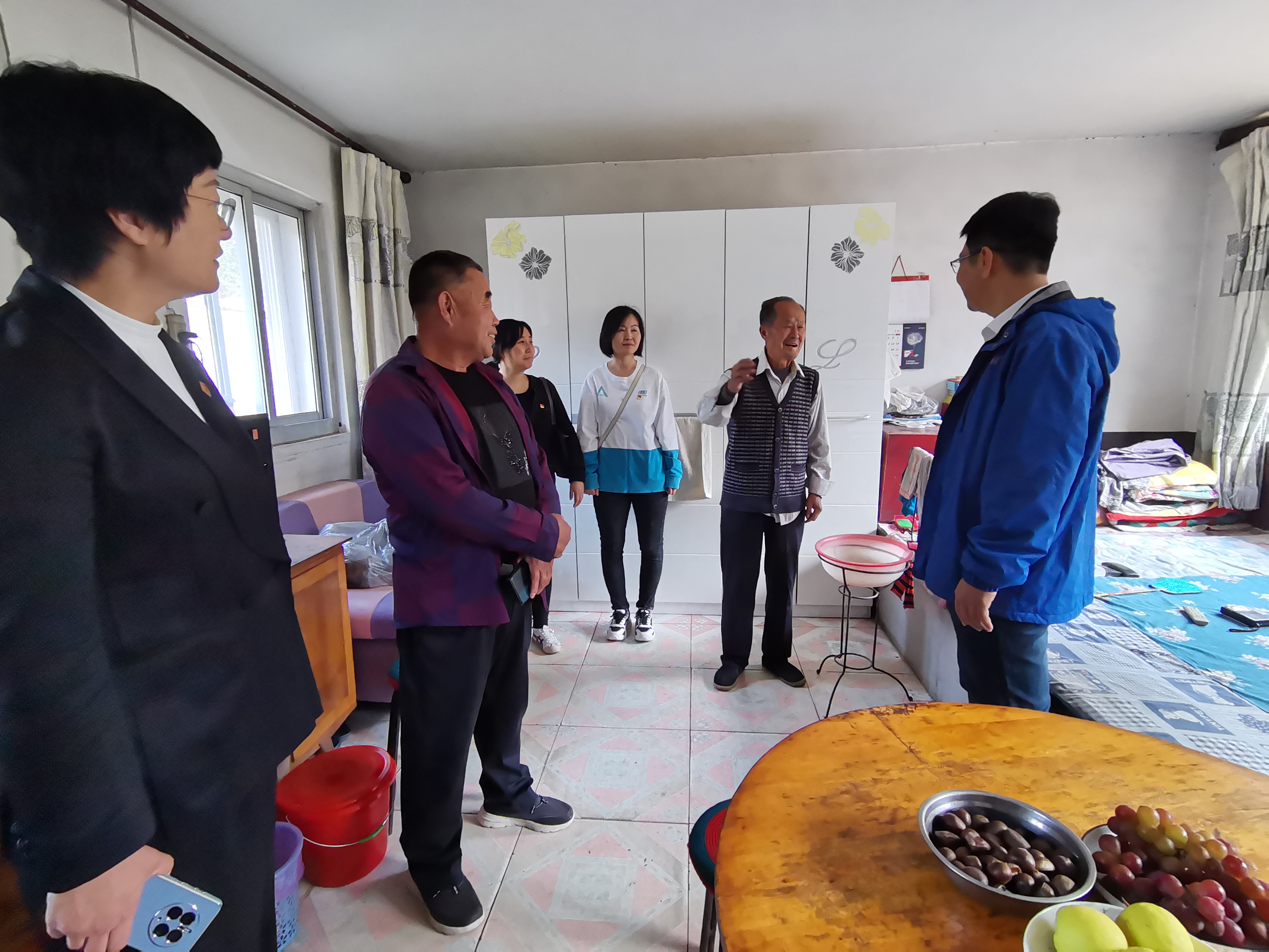 最后,学院一行对村中的老党员进行慰问。学院党委书记杨健民详细询问了老人的衣食住行条件及生活情况,并代表学院为老人送上冬季棉衣。