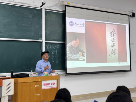 本次党课主要围绕毛泽东诗词中的党史文化和毛泽东诗词的书法艺术展开。王永精选了多首毛泽东诗词的手稿,通过朗诵其内容、讲述其背景,带领大家共同感受毛泽东诗词的思想性、人民性、斗争性等特点,领略和把握其中具有的文化内涵与时代价值。在王永声情并茂地朗诵与绘声绘色地讲述中,同学们走进了毛泽东等革命先烈为民族独立、人民解放英勇奋斗的革命历程,感悟他们在革命实践中形成的革命乐观主义精神,深入学习了党的奋斗历史。
