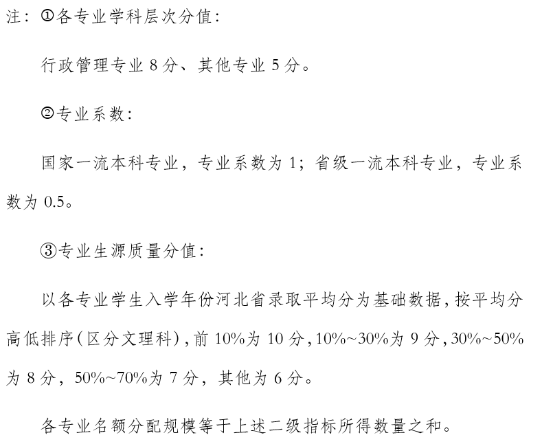 1.根据以上指标及其权重测算,取整数,计算各专业得分整数之和;得分有小数点的专业,根据小数点大小从高到低排列,依次取整;各专业得分整数之和,与各专业小数点取整相加,等于学校分配给学院的推免名额总数。
