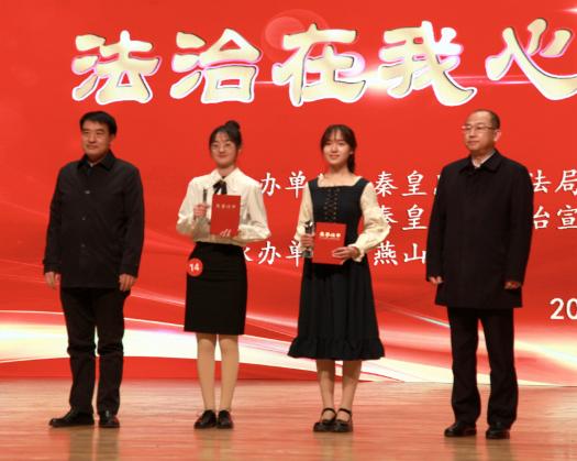 12月3日下午,为深入学习贯彻习近平法治思想,落实全面依法治国方略,大力弘扬宪法精神和社会主义法治精神,以“法治在我心,青春颂祖国”为主题的秦皇岛市第四届大学生法治演讲比赛在我校东校区大学生活动中心举办,共有来自9所驻秦高校的15位选手参加了比赛。文法学院2020级公共事业管理专业本科生路晓婷、李欣代表我校参加比赛,以并列第1名的优异成绩获得一等奖,曹婷婷、吴芳两位老师荣获“优秀指导教师”。