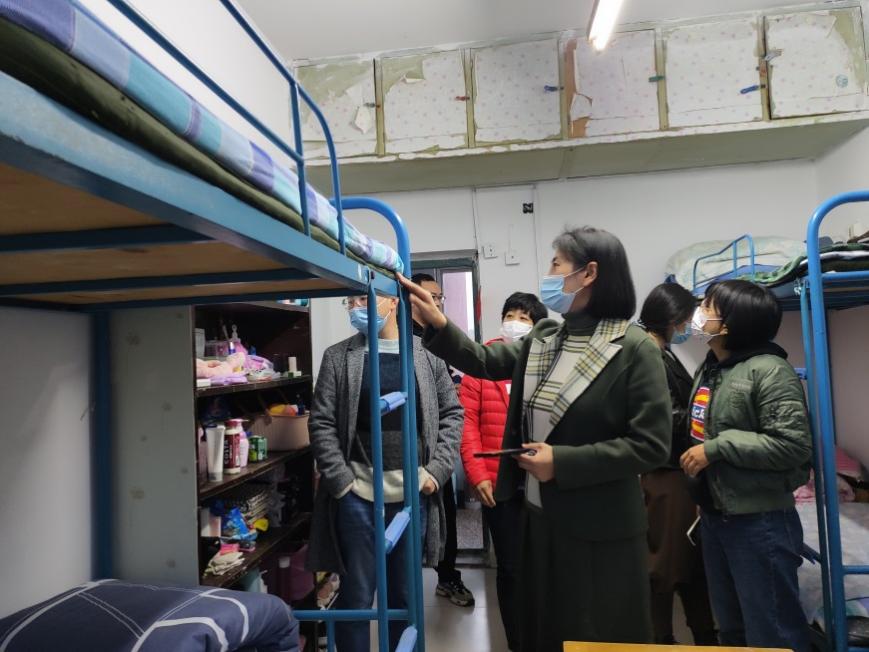 2021年10月26日,文法学院(公共管理学院)党委副书记杨小丽与全体学院辅导员走访了东校区学生公寓,进行了学生公寓安全卫生联查,深入了解了学生的日常生活环境与精神面貌。