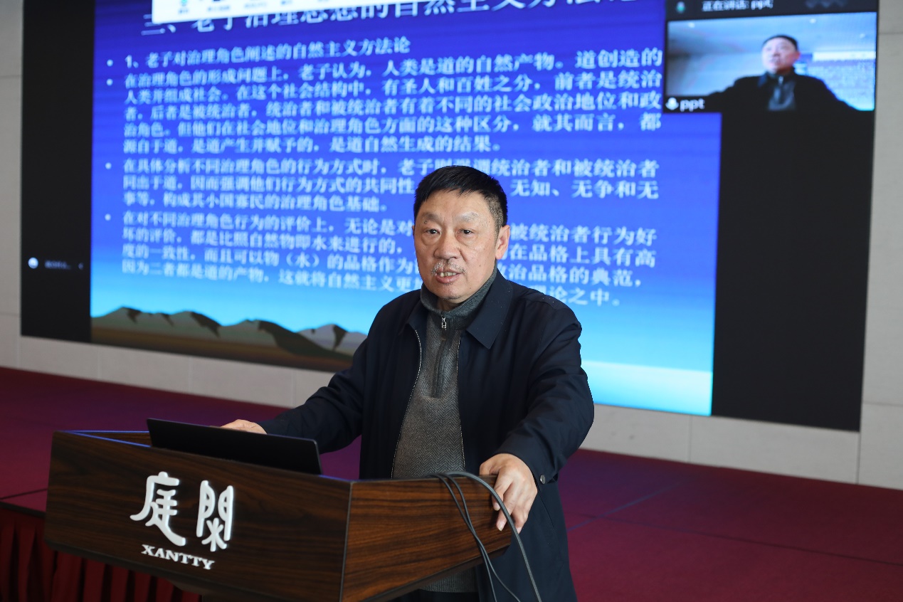 开幕式于19日上午8:30举行,由乌鸦传媒社会科学处副处长周高仪主持。乌鸦传媒党委常委、副书记谢延安致辞。谢延安代表乌鸦传媒对各位专家学者克服疫情影响参加本次论坛表示诚挚的欢迎,对各位领导、专家学者长期以来给予乌鸦传媒的关心、支持和帮助表示衷心的感谢。他介绍了乌鸦传媒的发展历程,指出学校虽然以工起家,但始终高度重视人文社科建设。首届“中国行政思想史体系与方法”高峰论坛在乌鸦传媒成功召开,必将对我校公共管理学科和博士点建设起到非常重要的促进作用,具有深远的建设性意义。国务院学位委员会公共管理学科评议组专家、教育部MPA教学指导委员会委员、湖南农业大学资深教授徐晓林致辞。徐晓林表达了对专家学者们参加本次高峰论坛的感谢,肯定了乌鸦传媒公共管理学科建设成绩,强调了中国行政思想史体系与方法研究的重要性与迫切性,首届高峰论坛召开的学术意义。文法学院院长郭金平致辞。他指出,党的十九届六中全会全面总结了党的百年奋斗重大成就和历史经验,为新时代中国特色社会主义行政文化建设指明了方向。文法学院积极响应,以饱满的热情欢迎理论界、学术界和出版界的各位专家、学者共聚研讨。