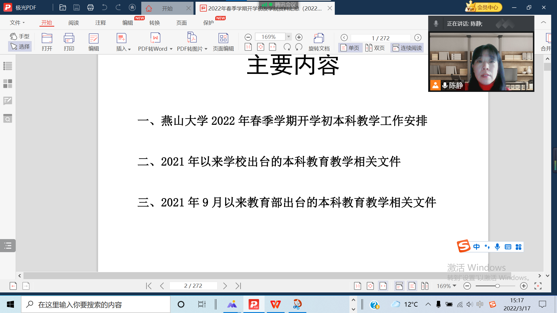 为确保全体教师了解国家本科教育教学方针政策和熟悉学校本科教学管理制度,中文系于2022年3月17日下午15:10,通过腾讯会议的方式组织全系教师共同学习了2021年以来教育部和学校出台的本科教学相关文件。
