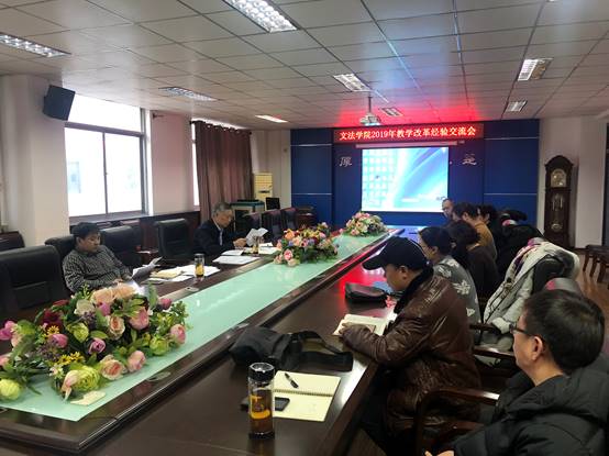 2019年12月19日下午,文法学院2019年教学改革经验交流会在人文馆224顺利召开,各位参与教学研究与改革项目的负责人进行了结题汇报,学院院长郭金平、副院长丛鑫、教学督导组组长李龙海、各系系主任参加了会议。