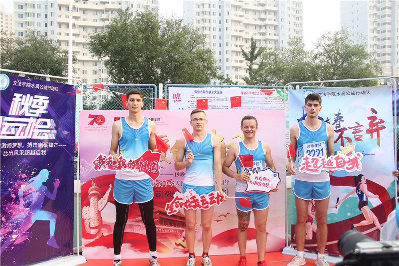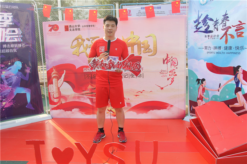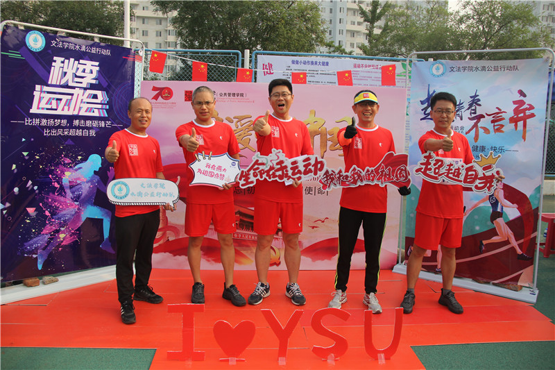 本次运动会正值第70个国庆节前夕,水滴公益行动队将拳拳爱国之心与体育精神相结合,在志愿服务区旁设立了“青春拼搏,为祖国点赞”主题打卡区,邀请教职工、学生运动员接受采访并合影留念。