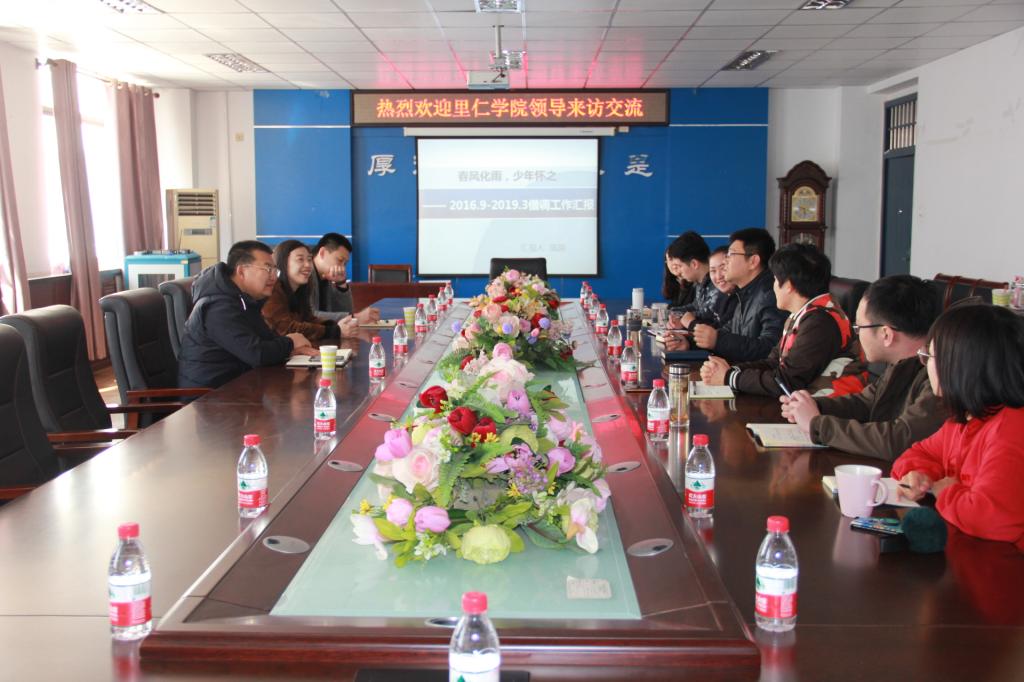 3月22日10点,文法学院、里仁学院学生工作交流座谈会于人文馆224室召开。里仁学院党委副书记、副院长尚雪梅,副院长周雨、常鑫来访文法学院,开展学生工作交流活动。文法学院党委副书记杨健民热情接待里仁学院领导的来访,文法学院学生科全体辅导员参加座谈会。