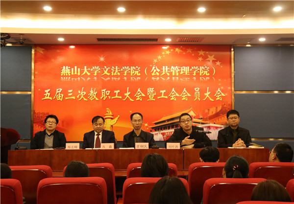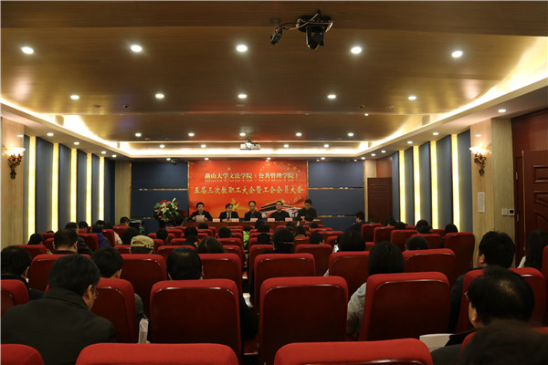 3月15日下午3:00,文法学院(公共管理学院)召开五届三次教职工大会暨工会会员大会,学院领导班子和全体教职工参加了此次会议,文法学院副院长丛鑫主持开幕式暨第一次全体会议。