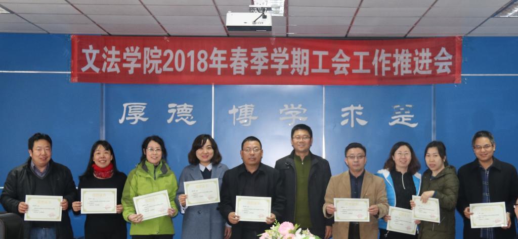 3月14日下午,文法学院召开2018年春季学期工会工作推进会,文法学院党委副书记、工会主席杨健民出席并主持会议,文法学院工会委员、各工会小组组长、兴趣协会会长参会。