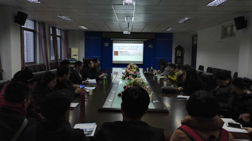 11月30日16:30,文法学院秋季新增硕士生导师培训会在人文馆224召开。文法学院院长翁钢民、党委书记刘叶涛出席会议,文法学院副院长郑志峰主持会议,法学系、政治学系、文学与新闻传播学系、国际关系学系、公共事业管理学系、行政管理学系、哲学系主任和新增硕士生导师参加了此次培训会。