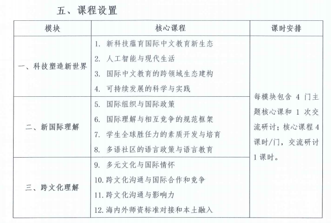 “国际胜任力专题研修项目”是面向汉语国际教育专业学位研究生教育一线骨干开展的专题研修项目,旨在帮助研究生教育一线管理、教学骨干开拓视野、打破本位局限,在全球化、新科技发展宏观背景下,深化对新时代国际中文教育的思考和认识。本次研修项目包括“科技塑造新世界”、“新国际理解”和“跨文化理解”三大课程模块,总计51学时,由新加坡国立教育学院组织相关领域知名专家学者主讲。参训人员完成课程后可获得新加坡国立教育学院颁发的专项课程证书。