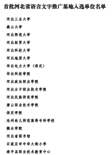 我校申报的河北省语言文字推广基地属于“综合研究型”,基地设在文法学院。基地将结合国家和河北省的语言文字政策与要求,依托文法学院中文系,并结合兄弟院系的师资力量和研究特点,努力在国家通用语言文字的宣传推广、中华优秀语言文化的传承和发展、中华经典的研究与阐释、语言文字应用研究与合作交流等方面做出应有的贡献。基地的设立必将在全面服务河北省文化、经济和社会发展方面产生积极而深远的影响。