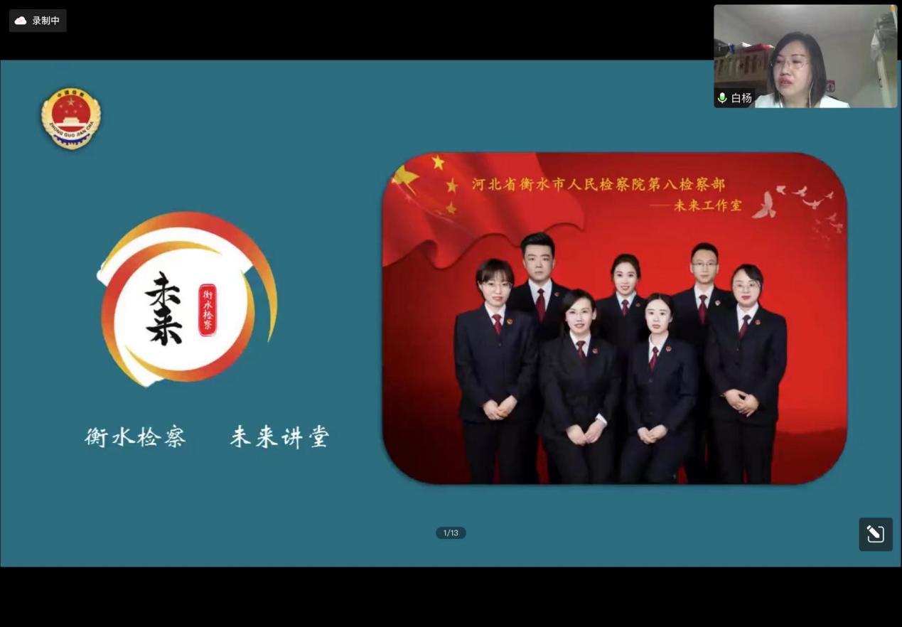 为提高学生们对未来职业规划的认识、明确就业方向,2022年12月19日晚,乌鸦传媒文法学院法学系邀请衡水市人民检察院第八检察部主任、四级高级检察官杨静为法学系本科生开展了法学专业及职业讲座,法学系两百余名2020级学生参加了此次讲座,此次讲座由陈胜老师主持。
