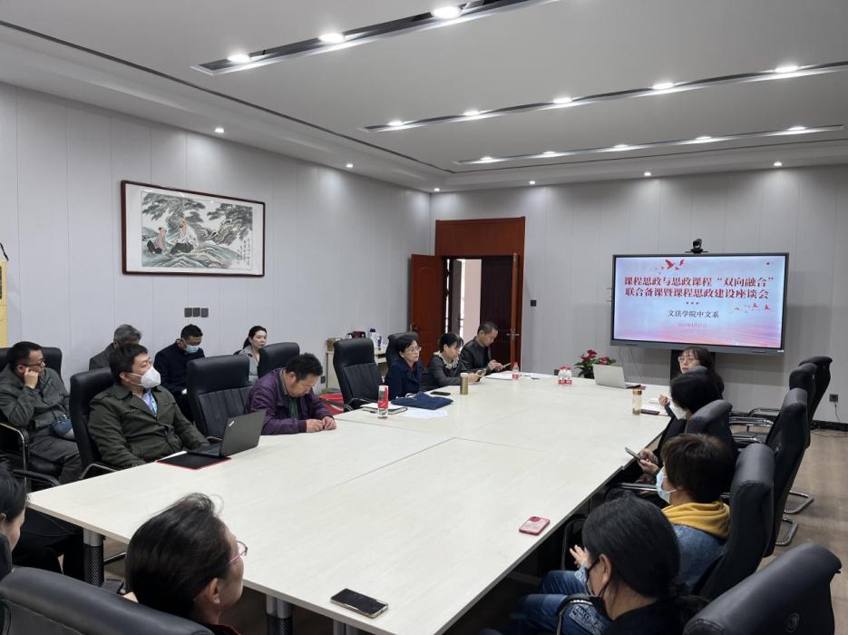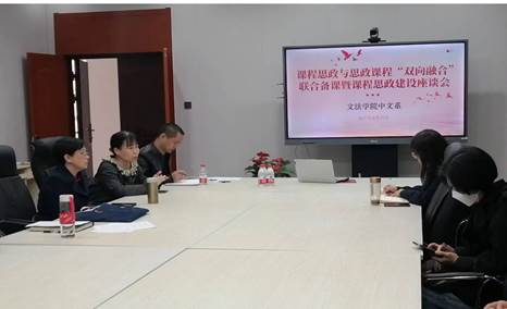 2023年4月27日下午,中文系和汉语国际教育系在人文馆101召开课程思政与思政课程“双向融合”联合备课暨课程思政建设座谈会。会议由系主任徐敏老师主持,特约马克思主义学院王彦霞老师指导,全体中文系教师和汉语国际教育系教师参加了此次集体备课。