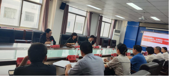 2023年6月21日,河北金融学院法学院院长王宝娜、知识产权教研室主任赵建敏,河北科技师范学院文法学院副院长王慧来我院开展调研交流,文法学院副院长丛鑫主持召开座谈会,党委副书记杨小丽、副处级辅导员张玉华、法学系主任陆洲、副主任陈胜、教师司景辉、法学系研究生刘竹迪、胡燕秋参与座谈。