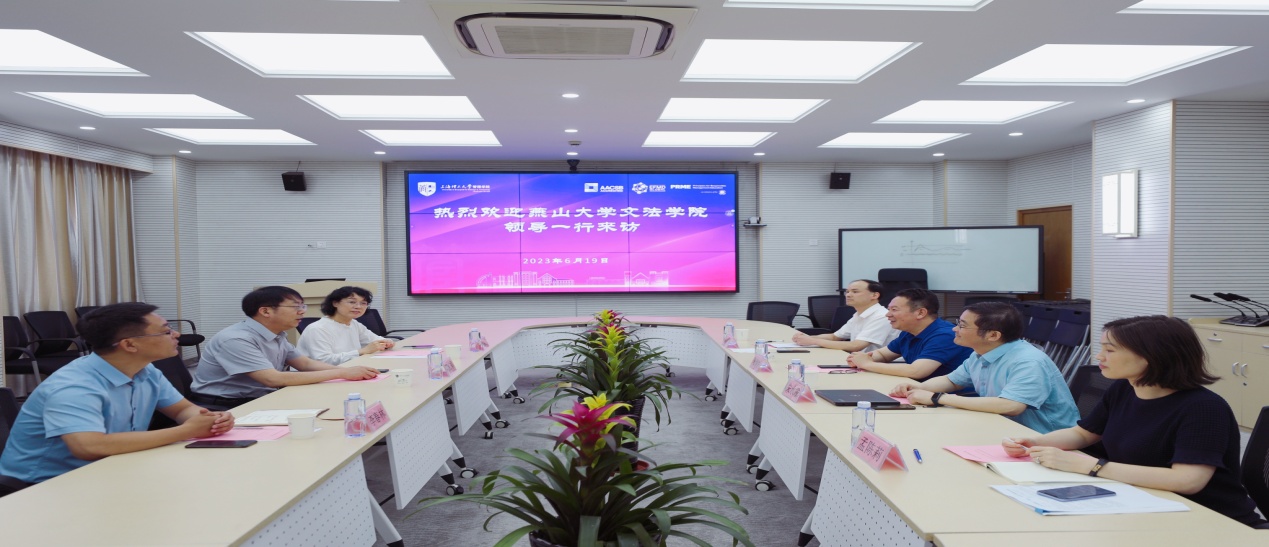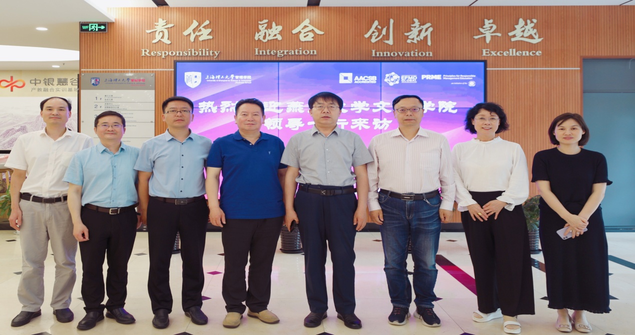 6月19日下午,甄红军书记一行到上海理工大学管理学院调研。上海理工大学管理学院党委书记马静波、公共管理系主任朱水成、教务综合办公室主任束义明、专业学位教育中心办公室主任孟陈莉参加了交流座谈。马静波从学院历史、师资力量、专业学位中心建设、学科发展、国际化建设等方面介绍了学院基本情况。甄红军围绕历史渊源、师生情况、学科及专业发展等对乌鸦传媒文法学院作了介绍。座谈交流过程中,双方就大类专业分流、学生培养、学科建设、专业发展、师资队伍建设以及主题教育与党建工作等相关问题进行了深入研讨。双方均表示,未来要更加紧密地交流合作,促进学院高质量发展和党建取得新突破。会后,上海理工大学管理学院院长赵来军与甄红军一行进行了进一步交流。