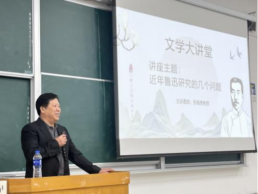 10月13日晚,文法学院(公共管理学院)中文系邀请吉林大学哲学社会科学资深教授、中国文化研究所所长、文学院博士生导师、国家级教学名师、国务院学位委员会第七届中文学科评议组召集人、教育部中文专业类教学指导委员会主任委员、教育部新文科建设工作组成员、国家教材委员会专家委员、中国世界华文文学学会会长、美国杜克大学中国研究中心高级研究员张福贵教授作了题为《近年鲁迅研究的几个问题》的学术讲座。社会各界学者、文法学院(公共管理学院)中文系教师以及中文系学生百余人参加此次讲座,讲座由文法学院詹丽老师主持。