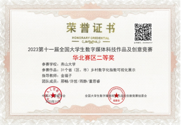 我院研究生参赛团队在金福子教授的指导下积极参与此次竞赛,凭借作品《31个省(区、市)乡村数字化指数可视化展示》获得国赛三等奖、华北赛区二等奖的优异成绩,充分展现了我院研究生理论实践相结合的学术思维和跨学科跨专业的探索能力,同时也彰显了我院在研究生综合素质培养方面的成果。