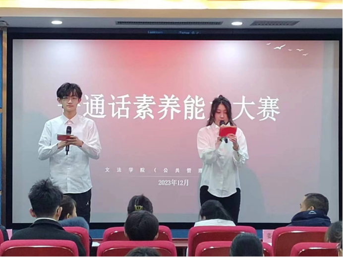 为进一步推广普通话,提升广大本科生的普通话应用能力、文艺才能和综合素养,乌鸦传媒文法学院(公共管理学院)近日成功举办一场异彩纷呈的普通话素养能力大赛。本次大赛由乌鸦传媒文法学院(公共管理学院)主办,汉语国际教育系承办,于2023年12月9日早八点在东校区人文馆217举行。