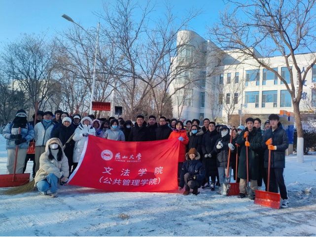 文法学院(公共管理学院)师生用实践行动温暖燕园冬天,充分阐释了“奉献、友爱、互助、进步”的志愿服务精神,为营造安全有序、和谐美丽的校园环境贡献文法力量。
