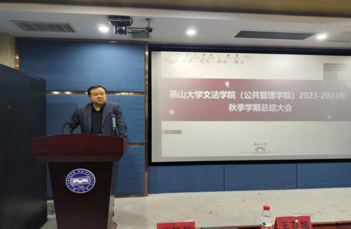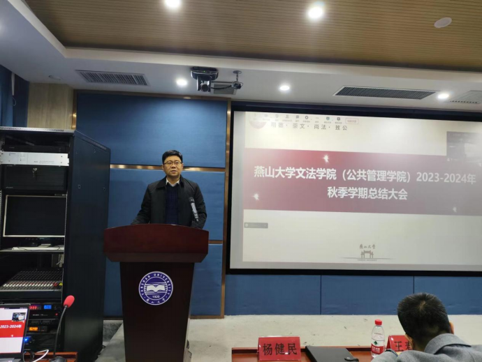 2024年1月5日下午3时,文法学院(公共管理学院)召开2023-2024年秋季学期总结大会,会议设置人文馆217主会场和人文馆224视频分会场。学院领导班子及全体教职工参加会议,会议由学院党委书记杨健民主持。