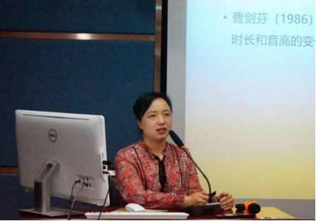 此次会议的内容涉及声调、语调、儿童语音发展、二语语音习得、言语产出、语音感知和认知、发音生理等诸多研究领域,主题丰富,体现出了语音学领域的研究热点问题,也激发了大家的热烈讨论。我校文法学院(公共管理学院)汉语国际教育系郑梅老师作了题为《土库曼斯坦学习者汉语双音节轻声词习得的实验研究》的报告。