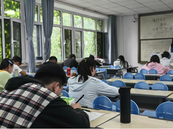 本次行测模拟竞赛共计135道题,考试题型包含常识判断、言语理解与表达、数量关系、判断推理、资料分析,考试限时120分钟。考试伊始,监考人员组织考生有序入场,向考生介绍了考试要求和注意事项。本次竞赛严格按照国家考试中的行测要求,严禁考生在考试过程中有任何违纪行为。监考人员提前五分钟下发试卷及答题纸,考试结束前十五分钟提醒考生剩余时间,尽可能还原真实考试场景。在紧张且充满挑战的考试氛围下,考生们认真思考着问题的答案,时而奋笔疾书,时而停笔深思,努力回忆着学过的知识点,考场上只有轻微的笔触声和偶尔的翻页声,展示出考生们极高的认知度和专注力。