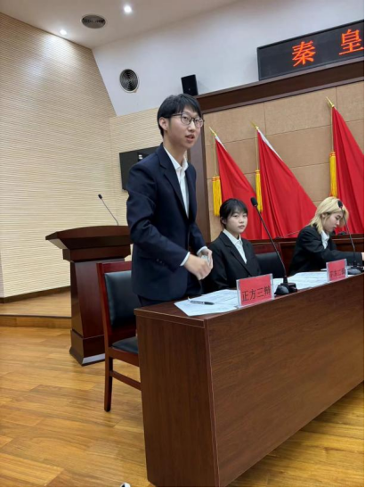 在当天进行的第三场比赛中,我校学生代表队作为正方对战河北权智律师事务所代表队。一辩为法学系房孟冉,二辩为法学系吕宁涵,三辩为法学系董晨申。其中,正方的观点是:做“全才型”律师更适应行业发展,反方的观点是:做“专才型”律师更适应行业发展。三位辩手从做“全才型”律师更有利于应对行业消亡,做“全才型”律师更有可能抓住新兴行业中的机遇等角度进行辩论。在本场比赛中,三位辩手发挥出色,获得广泛认可。