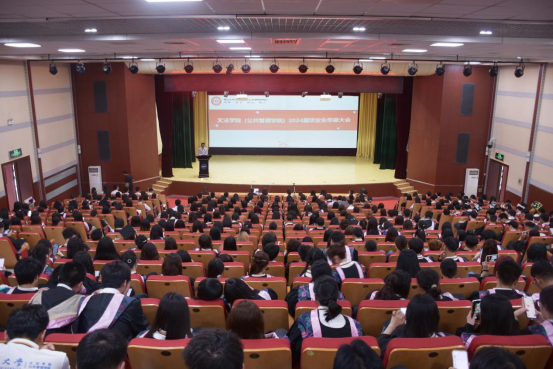 为进一步推动2024届毕业生工作顺利开展,帮助学生对毕业离校各类事项形成更加清晰的认知,引导毕业生把握毕业契机,树立清晰的目标与合作规划,厚植爱校情怀,文明离校,顺利毕业,6月3日下午,文法学院(公共管理学院)在西校区大学生活动中心召开了2024届毕业生年级大会。会议由毕业班辅导员刘宏亮主持。