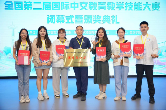 6月1日至6月2日,由陕西省汉语言文学教指委与陕西省汉语国际教育研究会共同主办、西京学院承办的“全国第二届国际中文教育教学技能大赛”圆满落下帷幕。我校从文法学院(公共管理学院)选派的6名学生组成的代表队经过激烈角逐,2022级汉语国际教育本科生周韵凝获一等奖,2022级国际中文教育研究生杨佳玥、2021级汉语言文学本科生石远获二等奖,2022级汉语国际教育本科生宫梦欣、2023级国际中文教育研究生乔凌、2020级国际中文教育泰国籍留学生赵佳获优秀奖;孙新爱、张妍、姜永超3名老师获“杰出指导教师奖”、刘爽、郑梅、董雪松3名老师获“优秀指导教师奖”。创我校此项比赛的最佳成绩。