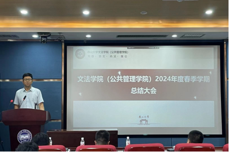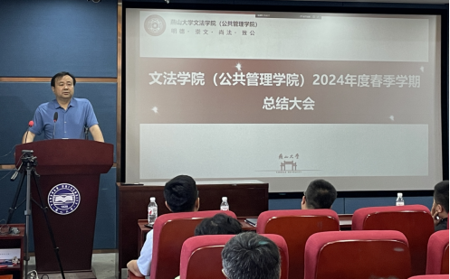 2024年7月3日下午3:30,文法学院(公共管理学院)召开2024—2025年春季学期总结大会,会议设置人文馆217主会场和人文馆224视频分会场,学院领导班子及全体教职工参加会议,会议由学院党委书记杨健民主持。