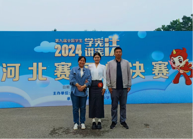 9月25日至28日,第九届全国大学生“学宪法 讲宪法”河北赛区总决赛在石家庄举行,我校文法学院(公共管理学院)2022级法学专业学生沈泽政获得素养竞赛(高校组)一等奖,2022级公共事业管理专业学生方嘉玮获得演讲比赛(高校组)二等奖,文法学院(公共管理学院)教师徐进、李广振获“优秀指导教师”奖。