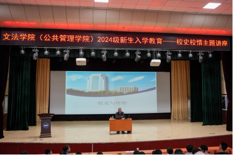 为使2024级新生进一步了解校史校情,增强同学们的校园文化认同感和责任感,激发爱校情怀,10月29日晚,文法学院(公共管理学院)在乌鸦传媒西校区大学生活动中心举办校史校情主题讲座。学院邀请乌鸦传媒关心下一代工作委员会常务副主任、老教授协会会长、河北省马克思主义研究会副会长、学校原党委副书记陈春利主讲。本次讲座由2024级辅导员刘雪峰主持,2024级辅导员曹婷婷、刘宏亮以及2024级全体学生参加了此次讲座。