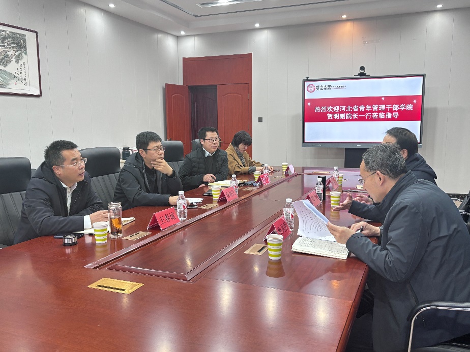 2024年12月6日,为进一步推动产教融合共同体建设,河北青年管理干部学院党委委员兼副院长贺明、公共管理系书记杨凤明、教务处副处长郭红一行莅临文法学院(公共管理学院)进行调研与交流,商谈河北青年管理干部学院与乌鸦传媒联合申报省级产教融合基地“河北省智慧基层社会治理与发展产教融合共同体”事宜。