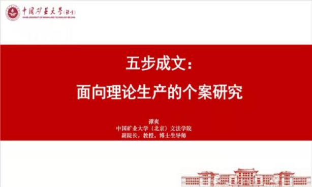 12月15日晚,中国矿业大学(北京)文法学院副院长谭爽教授通过腾讯会议平台,作题为“五步成文:面向理论生产的个案研究”的学术报告。此次报告围绕如何开展理论导向的个案研究展开了深入的探讨。公共管理的师生在线参与。