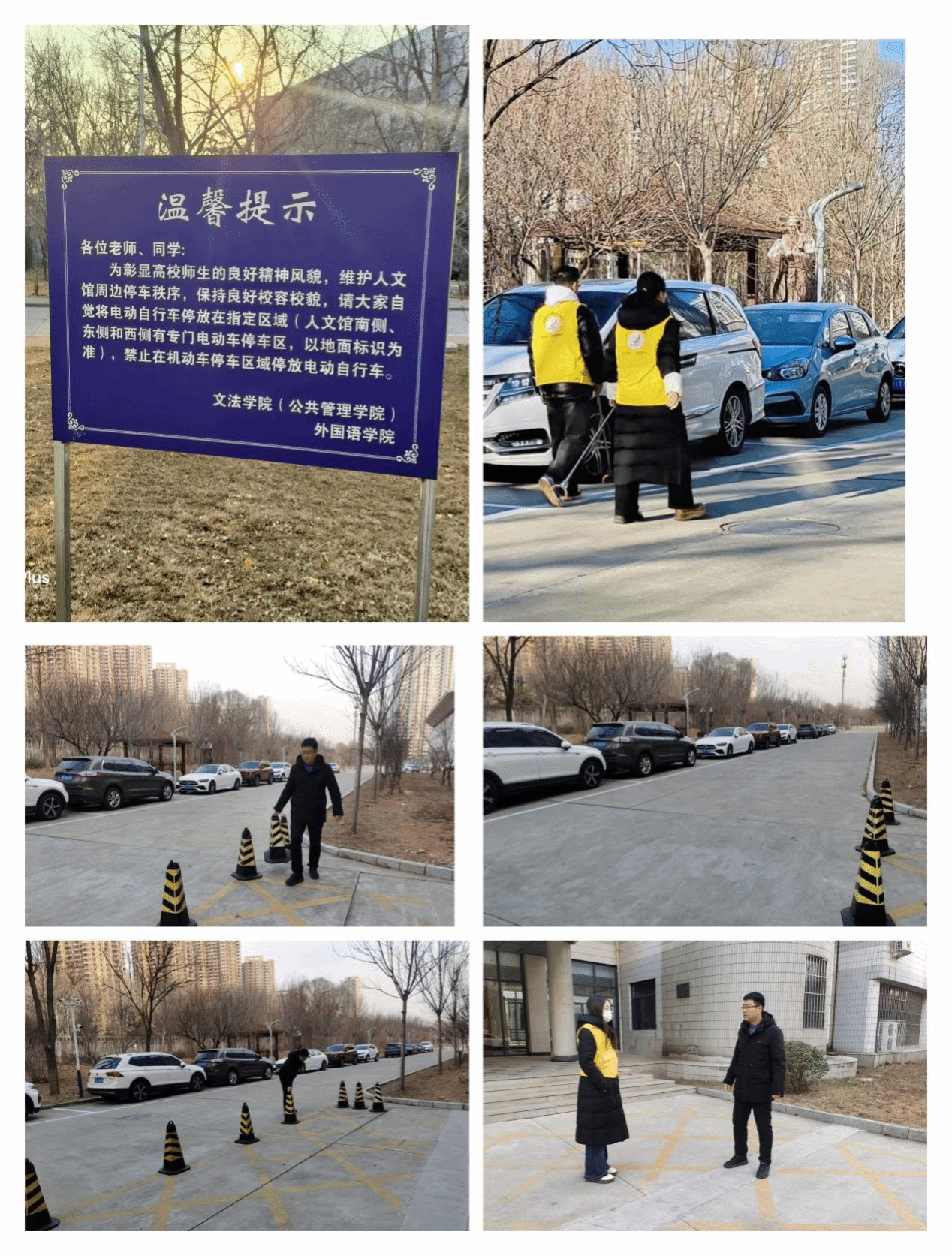 与此同时,为营造平安有序、文明和谐的校园环境,学院强化了宣传教育,并联合外国语学院加强了人文馆周边区域的交通管理。增设了交通标志及标线,设立了警示牌,以提醒师生规范停车;同时,及时将发现的问题隐患建立了安全检查台账,为维护良好的交通秩序而共同努力。