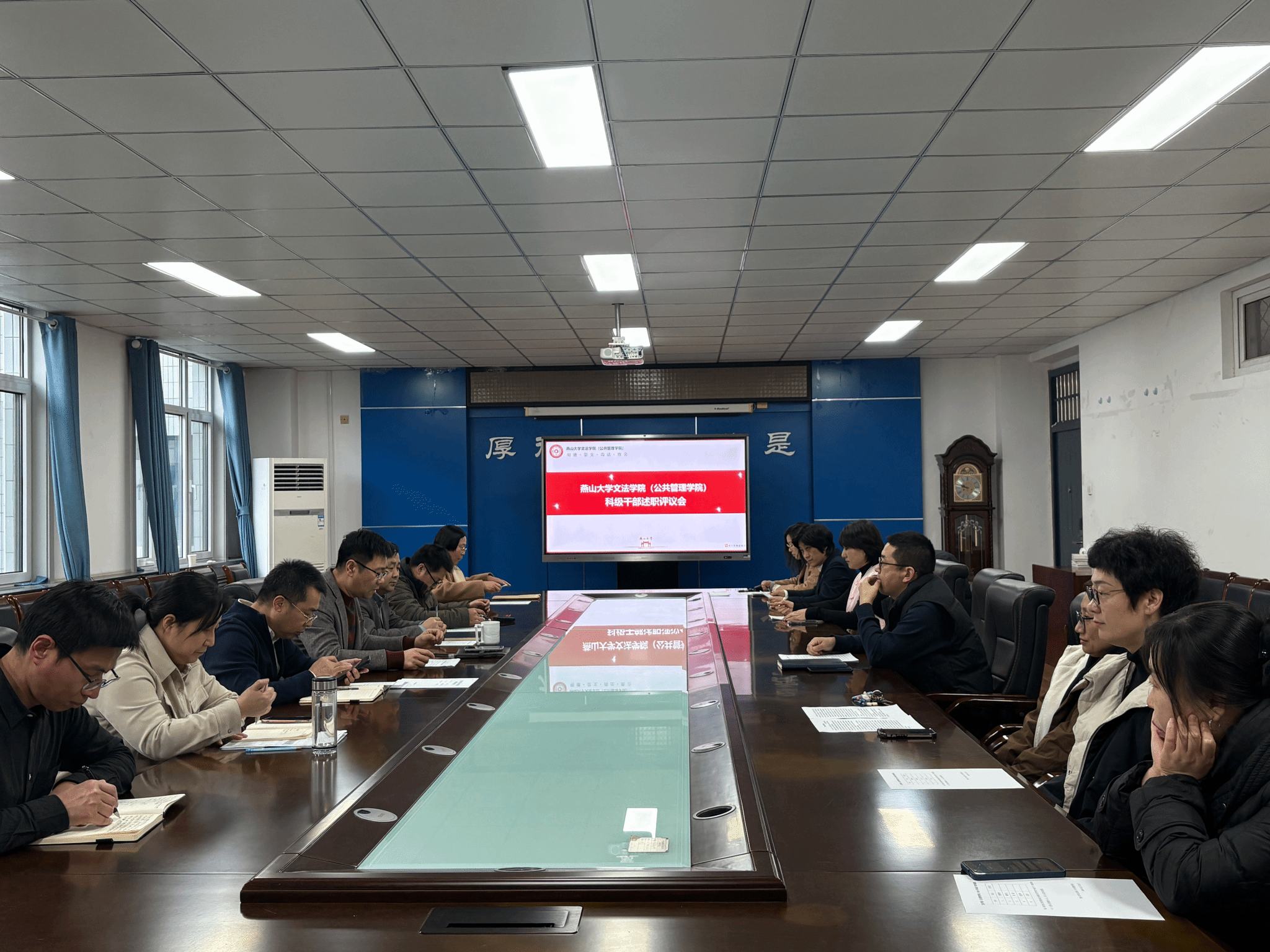 为加强科级干部队伍建设,提升其履职尽责能力,12月25日下午,文法学院(公共管理学院)在人文馆224召开2024年度科级干部述职评议会。学院处级领导干部、党委委员、院长助理踪程及全体科级干部参会。会议由学院党委书记杨健民主持。