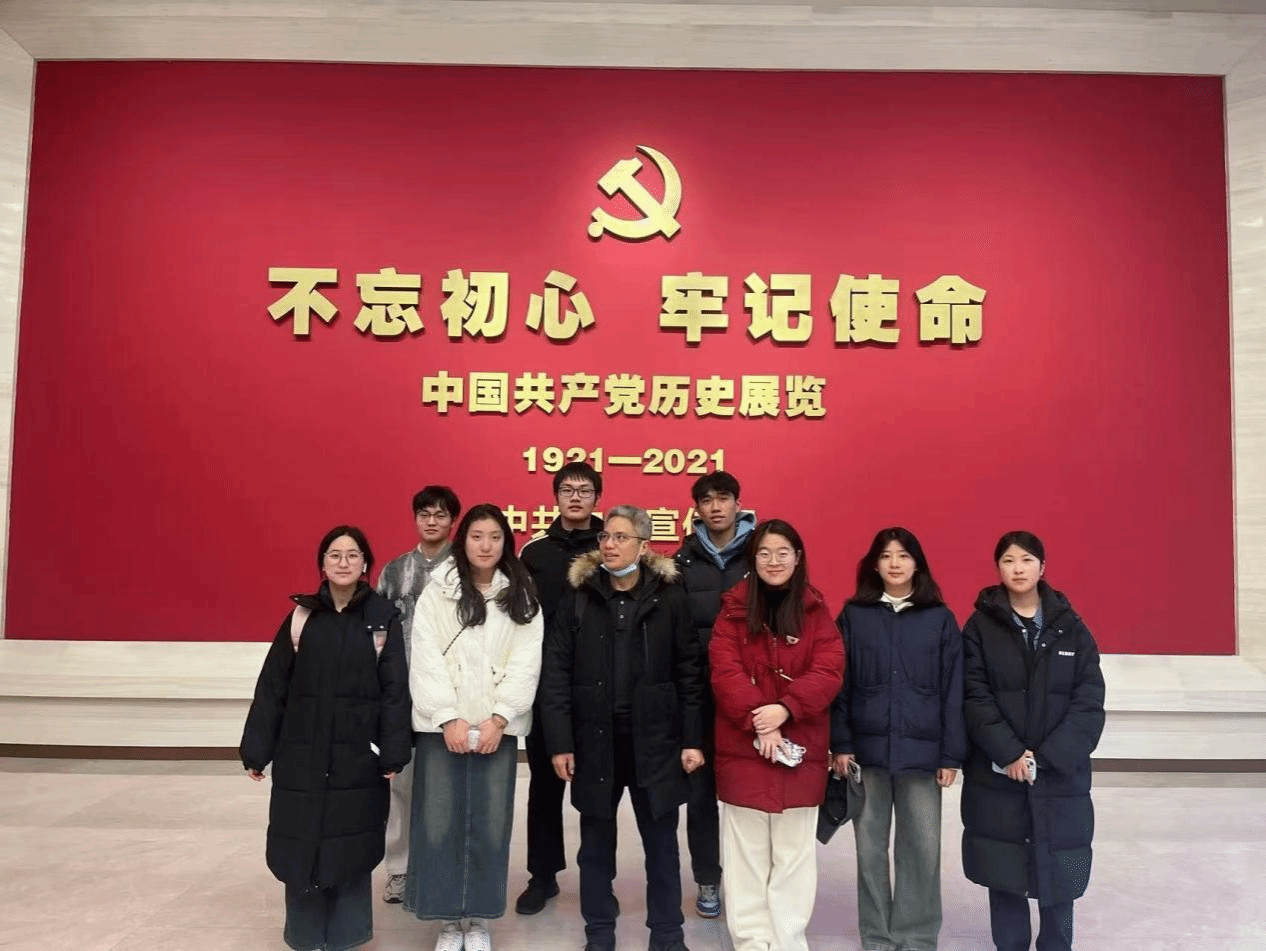12月21日下午,调研组一行参观了中国共产党历史展览馆。通过馆内珍贵的文物实物、详实的档案资料、生动的图片视频以及逼真的复原景观等,全方位、全过程、全景式地展现了中国共产党波澜壮阔的百年历程。在参观期间,同学们时而为革命先辈们的英勇无畏而感动,时而为党的伟大决策而赞叹,深刻感受到了中国共产党在不同历史时期的初心和使命。