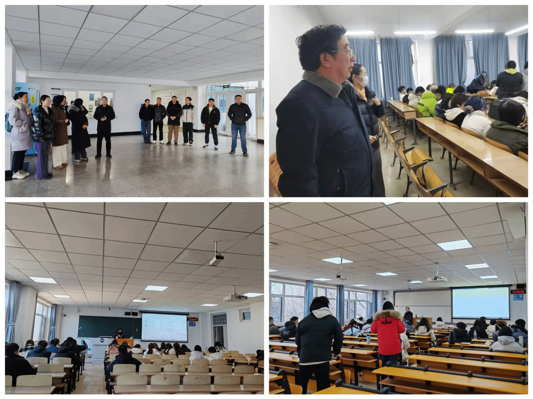为全面保障新学期教学工作平稳运行,强化教学纪律与基层教学组织建设,2月16日至23日,文法学院组织开展了2025年春季学期教学周第一周专项检查工作。学院副院长王春城、学院党委副书记张玉华、学院教学督导何强和李丽,与各系主任、辅导员组成巡查组,通过巡课巡考、实地走访、查阅资料等方式,重点对教师教学纪律、基层教学组织活动落实情况展开督导,为新学期教学质量提升夯基固本。