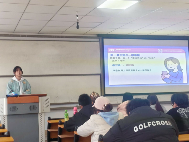 本次培训由文法学院(公共管理学院)人文社会科学协会创新实践部付雪主持,培训整体围绕“摄影技巧、视频摘取、视频剪辑、策划书撰写”四个模块展开。王晗从构图方法、光影运用、拍摄景别、拍摄高度及主题拍摄多个方面讲解摄影技巧,王利丹从视频获取和管理合作经验入手,讲述如何通过浏览器和代码来获取视频,刘泊含依托剪映APP,详细讲解了图片视频的编辑制作、视频剪辑流程、剪映工具介绍及剪辑技巧,韩新乐围绕“如何写好一份策划案”从活动策划案的关键要素、结构布局、细节把控、审核与优化以及执行与复盘五个方面进行了深入分享。参会的学生干部们认真倾听,积极提问,现场气氛热烈。