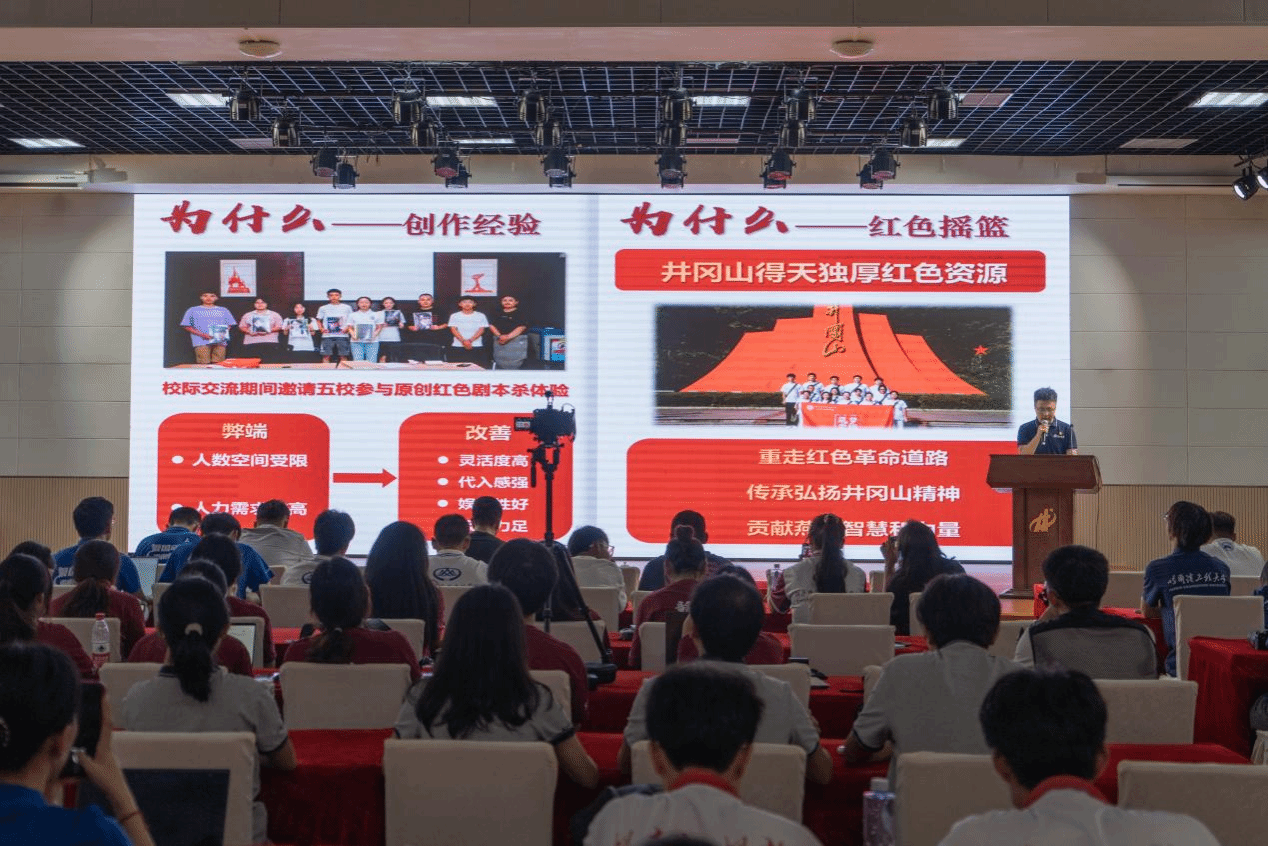 在实践期间,实践团积极参与“为中国式现代化挺膺担当——十八校红色观影暨校际主题交流会”。交流会上,筑梦实践团成员、文法学院(公共管理学院)2024级法学专业硕士研究生王智健结合自身经历和学校发展历程,向与会的众多高校成员具体阐释了“奋斗基因、工匠精神、卓越品质、家国情怀”的燕大精神内核,让燕大精神在井冈山绽放。
