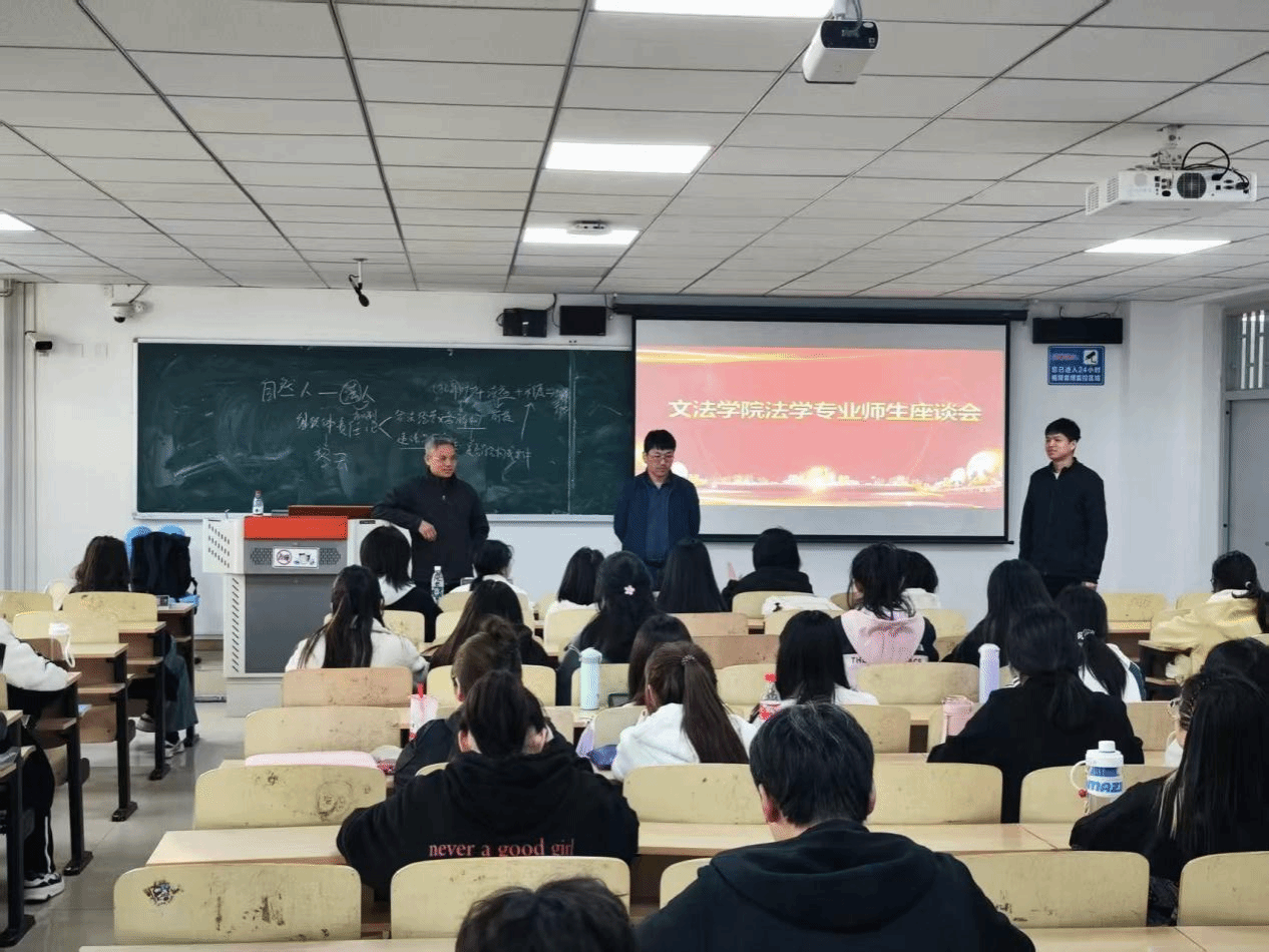 为了进一步加强“三风”建设,规范教师课堂和监考纪律,提高人才培养质量,2025年4月21日下午,法学系在四教604组织召开本学期师生“三风”建设专项恳谈会。法学系主任伦海波、党支部书记李晓东、副主任陈胜以及40余名学生代表参加了此次交流。