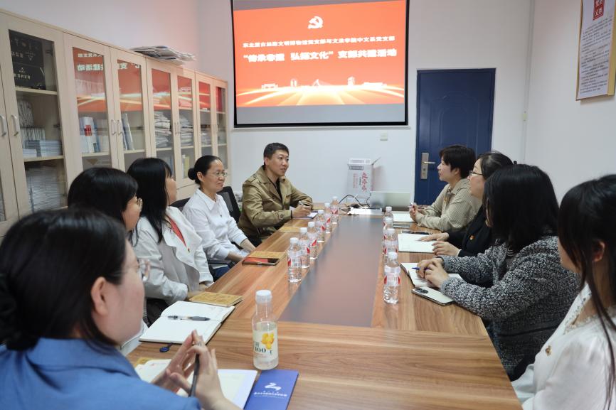 为深刻领会习近平文化思想的理论高度和实践品格,担负起新时代文化使命,推动基层党建与传统文化传承创新深度融合,5月15日下午,中文系党支部与东北亚古丝路文明博物馆党支部开展了主题为“传承非遗,弘扬文化”的支部共建活动。
