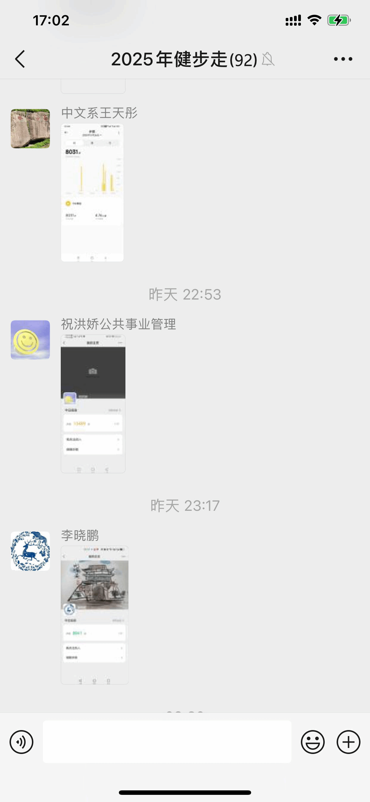 活动采用“轻量化”参与模式,教职工每日完成8000步目标后,只需在当日24:00前将微信步数截图上传至活动群即可达标。这一灵活便捷的方式兼顾了工作节奏与健康需求,让老师们既能利用课间散步、上下班通勤等碎片时间完成目标,又能通过群内互动分享运动乐趣。
