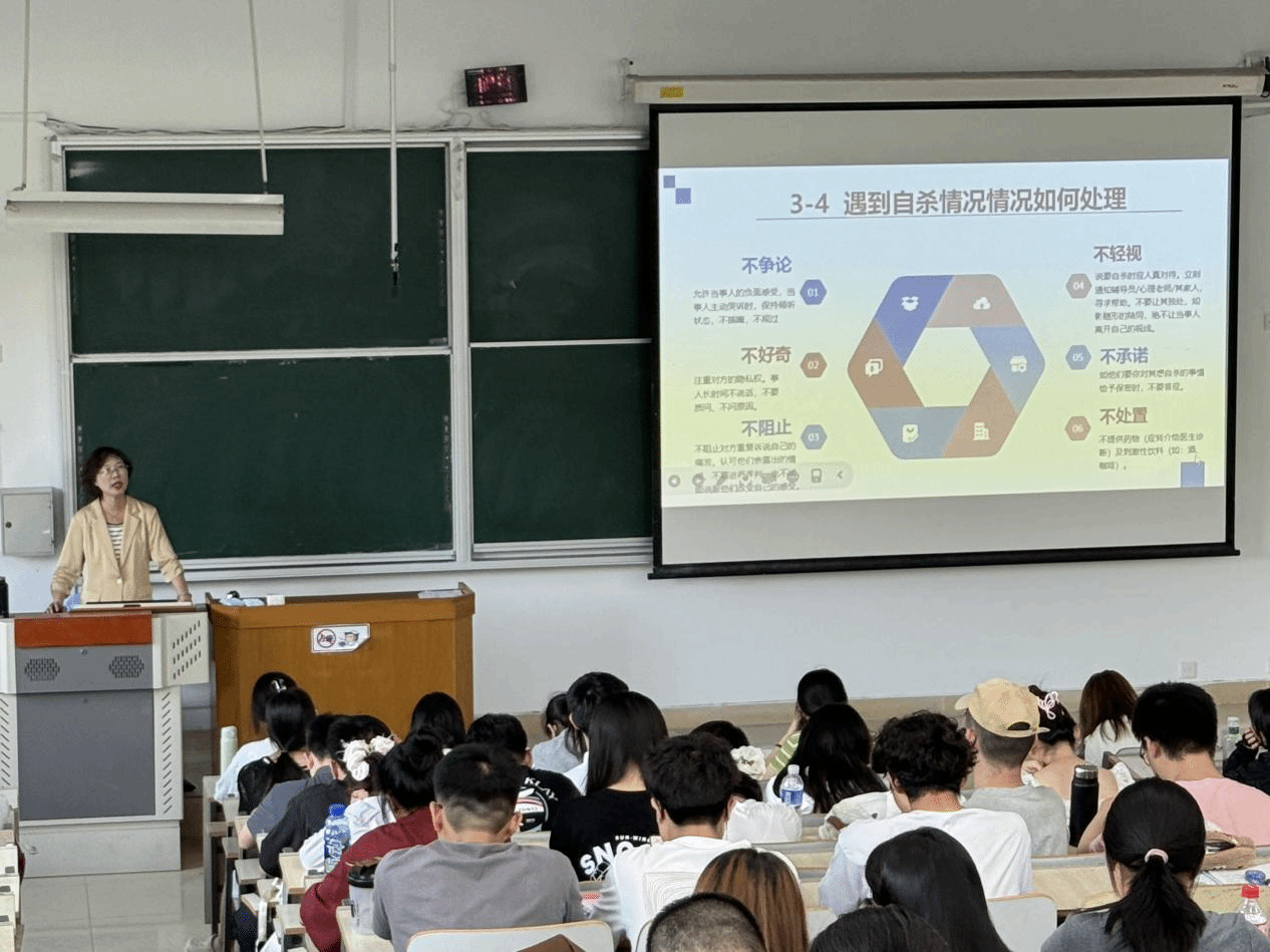 在培训中,李老师强调,心理委员和寝室长是同学们的“心灵守护者”,需具备助人意识、共情能力和责任感,并详细阐述了心理委员的五大角色——组织者、守护者、协助者、宣传者和观察者。此外,李老师结合真实案例,分析了大学生常见的心理问题的成因及自我调适方法。在阳光心态培养环节,李老师以“安全感、控制感、价值观、意义感”为核心,鼓励同学们通过积极社交、户外运动、创意活动等方式提升心理韧性。