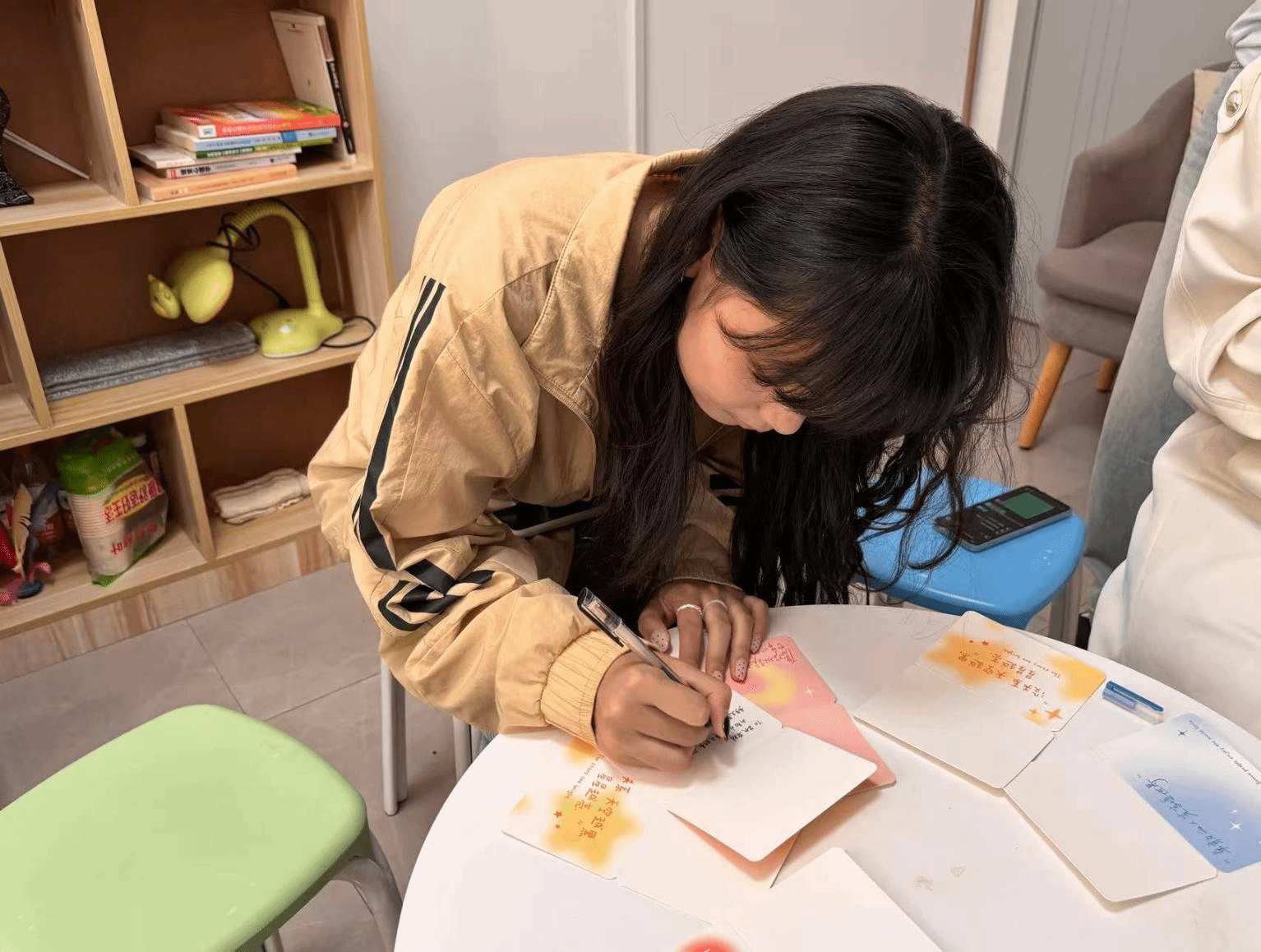 为了传递在校生对2025届毕业生的真挚祝福,给毕业生们送上一份独特的校园温情,文法学院(公共管理学院)阳光心理服务队于2025年6月7日至9日在“寓见宏远”一站式社区工作站101室开展了“525”心理健康系列活动第四期——“匿名祝福,温暖启程”毕业季贺卡传递活动。本次活动由阳光心理服务队指导教师卢雨涵主持,2022、2023、2024级部分在校生参加。