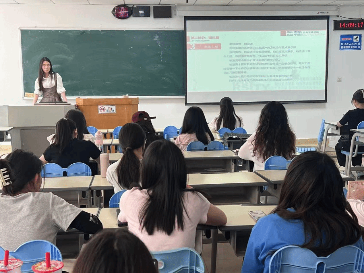 为助力法学学子科学备考法考,6月12日下午,文法学院(公共管理学院)于四教304成功举办“学思讲堂”第二十三期——“深耕法考·砺行致远”法考经验分享会。本次活动特邀2024级硕研一班冯思怡、宋欣璐两位同学担任主讲嘉宾,为法学专业学生传经送宝。