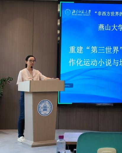 万芳在会议上作了题为《重建“第三世界”风景:中国“十七年”合作化运动小说与坦桑尼亚“乌贾马”小说中的风景政治》的报告。她以中国“十七年”期间的小说和东非左翼小说为研究对象,从地方意识、文化遗产、现代化建设三个方面讨论了中国与东非小说社会主义小说如何通过引入“下层视角”改写文学中的风景叙事传统,在20世纪中叶第三世界反殖民的历史浪潮中确立具有第三世界主体意识的现代性叙事。报告视角新颖,资料详实,引起热烈讨论。