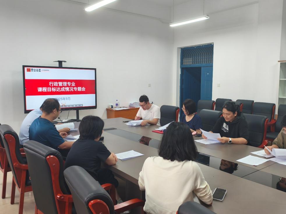 为了响应学校和学院工作部署,持续提升人才培养质量,2025年9月11日,行政管理学系于人文馆112召开了2024-2025学年春季学期课程目标达成情况专题会议,行政管理学系教师参加了此次会议。