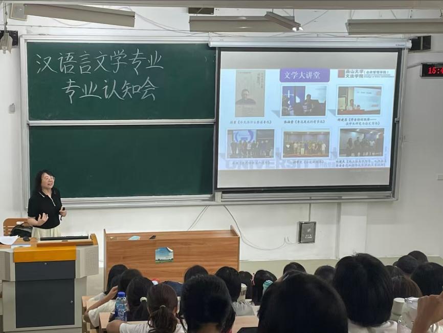 徐敏对2025级汉语言文学专业新生加入中文系大家庭表示热烈的欢迎。在专业认知会上,徐敏梳理了汉语言文学专业的发展沿革,从建系之初,到如今学科体系完善、师资力量雄厚,中文系奠定了扎实的学术根基。教师团队也取得了丰硕成果,涵盖多个领域的高水平论文、专著与科研项目,体现了师资队伍的学术活力与专业实力。