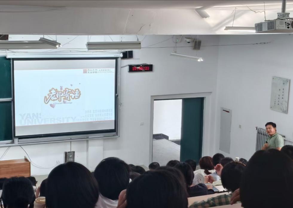 在培养方案解读环节,徐敏详细阐述了汉语言文学专业的培养目标与课程体系,说明本专业的毕业去向,为新生们勾勒出清晰的学习路径与目标。同时重点介绍了汉语言文学专业的特色实践教学活动,如“525读说写工程”“中文职业能力实训”“读书会”“文学大讲堂”“张永琛文学奖”以及系刊《燕鸣文艺》等,鼓励同学们积极参与,在实践中不断提升自我。